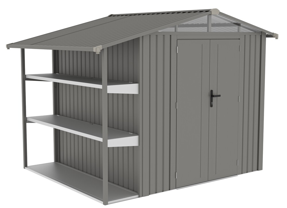 Kovinska vrtna lopa AMY X-B je odlična izbira za vse, ki iščejo trden in praktičen prostor za shranjevanje na vrtu....