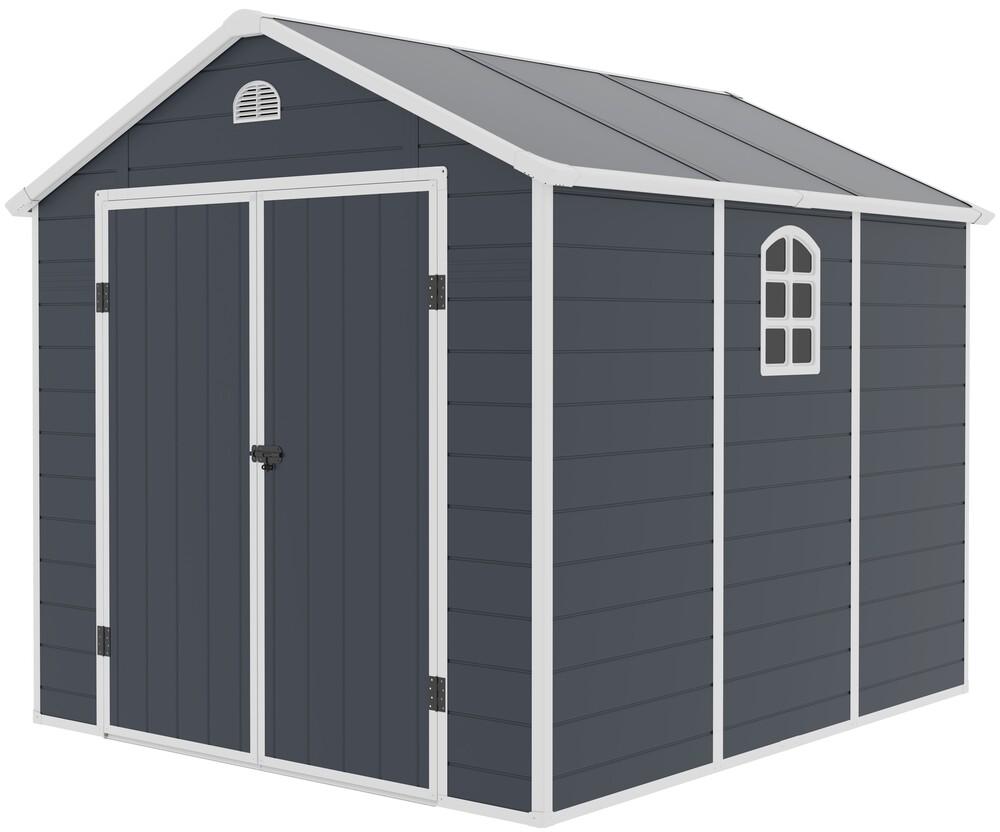 Elegantna vrtna hiška iz edinstvenega materiala DECOCOAT v videzu lesa, robustna konstrukcija in brez vzdrževanja. Idealna rešitev za orodje, kosilnico...